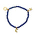 Sierlijke elastische armband uit lapis lazuli, met metalen bedels in de vorm van sterren, zon en maan.